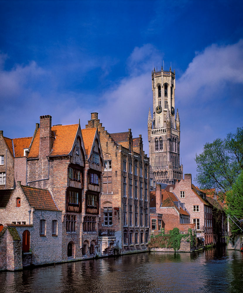 #2503 Famous Historical Scene in the City Center of Bruges at the Quay of the Rosary with the Belfry of Bruges in the Background